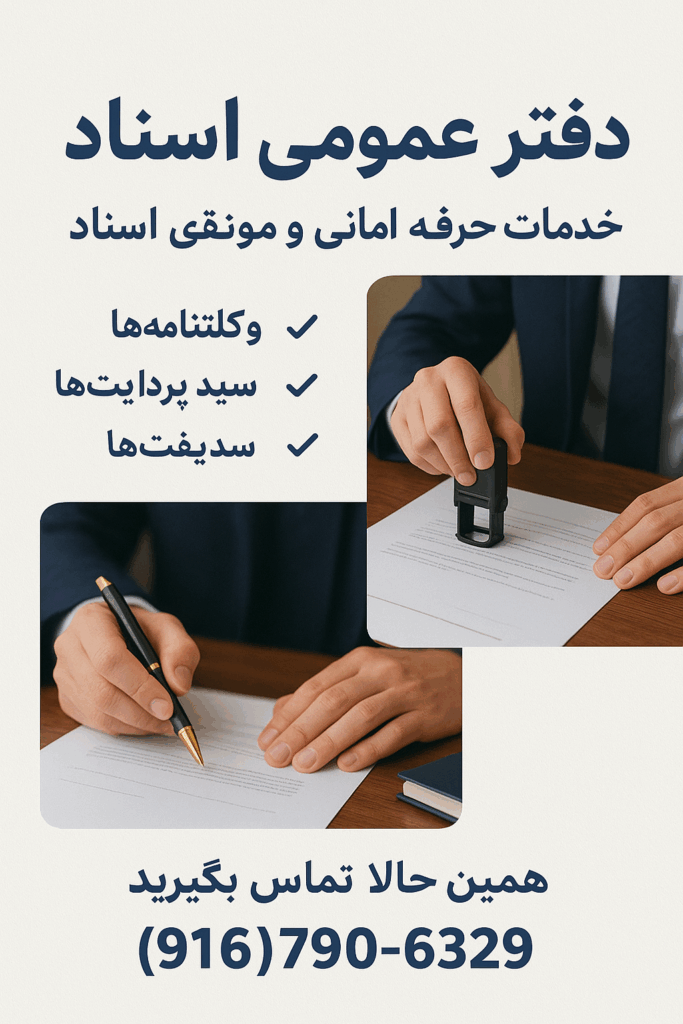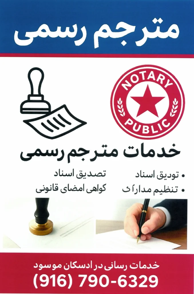 ارائه خدمات نوتری پابلیک و اسناد رسمی در رزویل و پلاسر کانتی. امضای اسناد، وکالتنامه، اسناد املاک، و خدمات سیار در محل شما. سریع، مطمئن و حرفهای